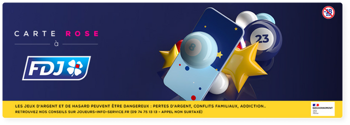 La FDJ permet une liberté créative dans la réalisation des visuels de ses Cartes Roses. Il fallait ici respecter l'identité des jeux Loto et Euromillions et les représenter par leurs symboles significatifs (boule et étoile).